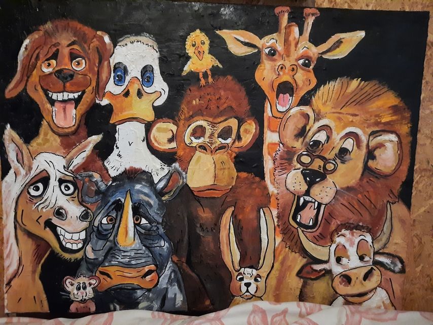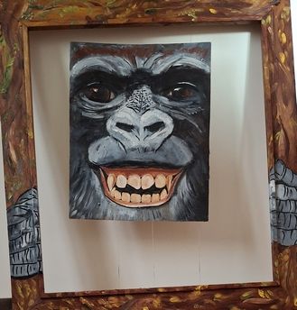 Rembrandt een badende Hendrickje met Mondriaan like achtergrond